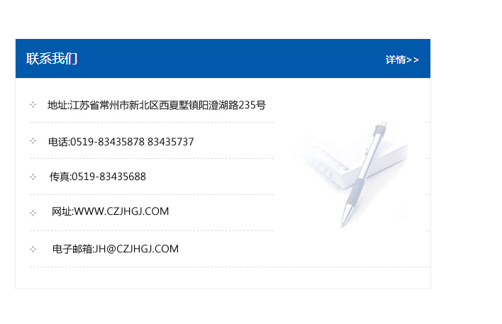 傳真:0519-83435688    郵編:213135    網址:WWW.czjhgj_com.bjmhd.com    電子郵箱:JH@czjhgj_com.bjmhd.com